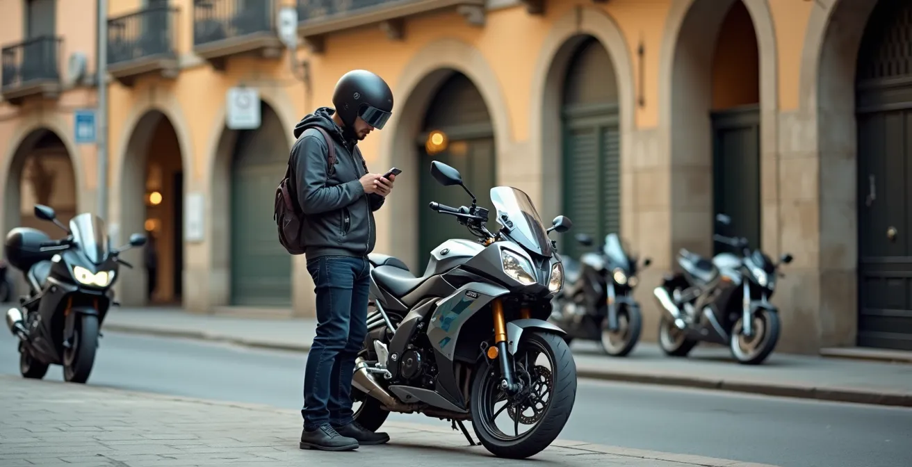 El aparcamiento es, a menudo, el mayor sumidero de tiempo. Dar vueltas buscando un sitio, dudar sobre la legalidad de una acera o, finalmente, optar por un parking de pago por desesperación, anula toda la ventaja de agilidad de la moto. Tener una estrategia clara de aparcamiento es, por tanto, el broche de oro de una inteligencia de trayecto bien aplicada. No se trata de suerte, sino de método.